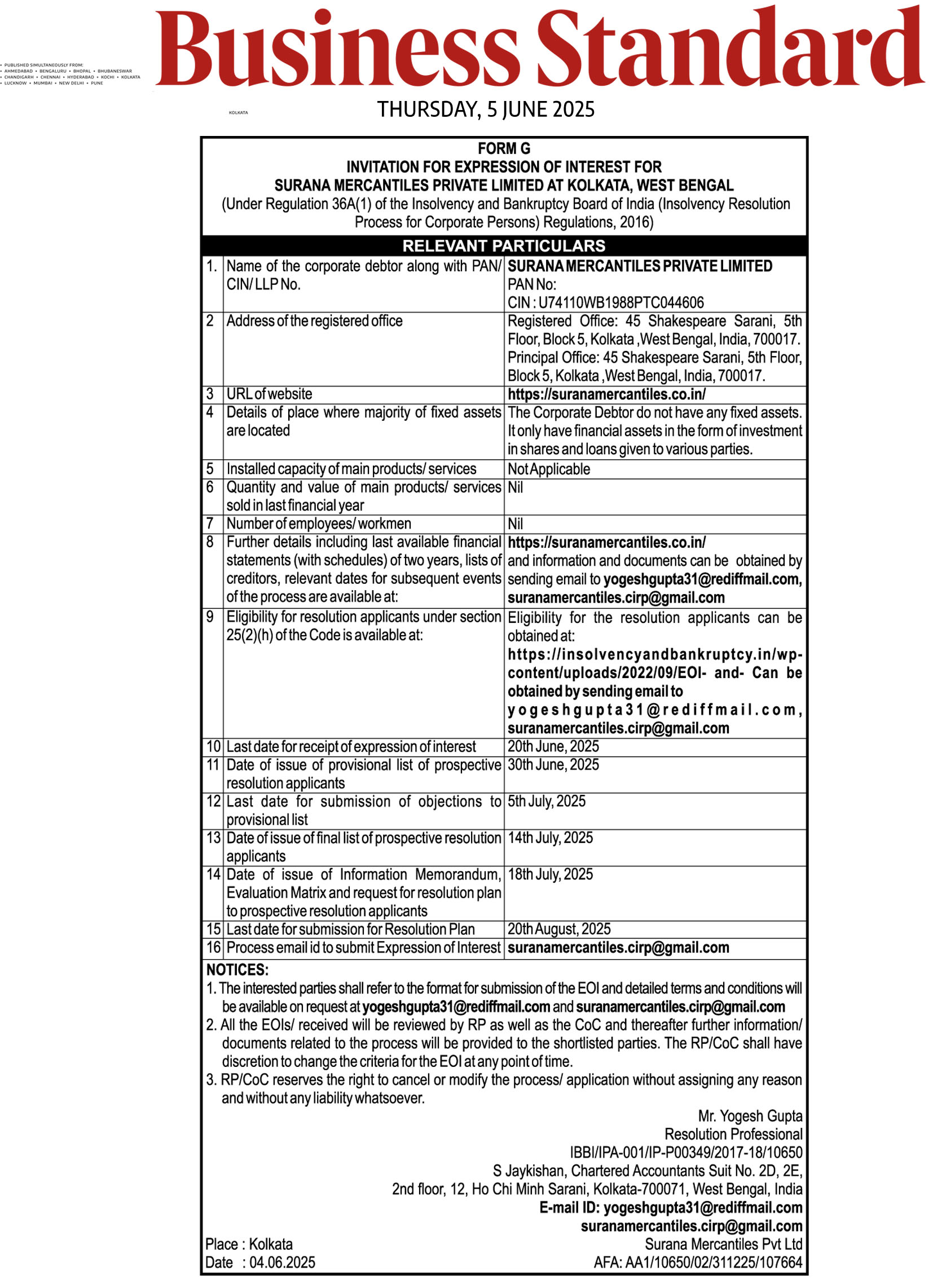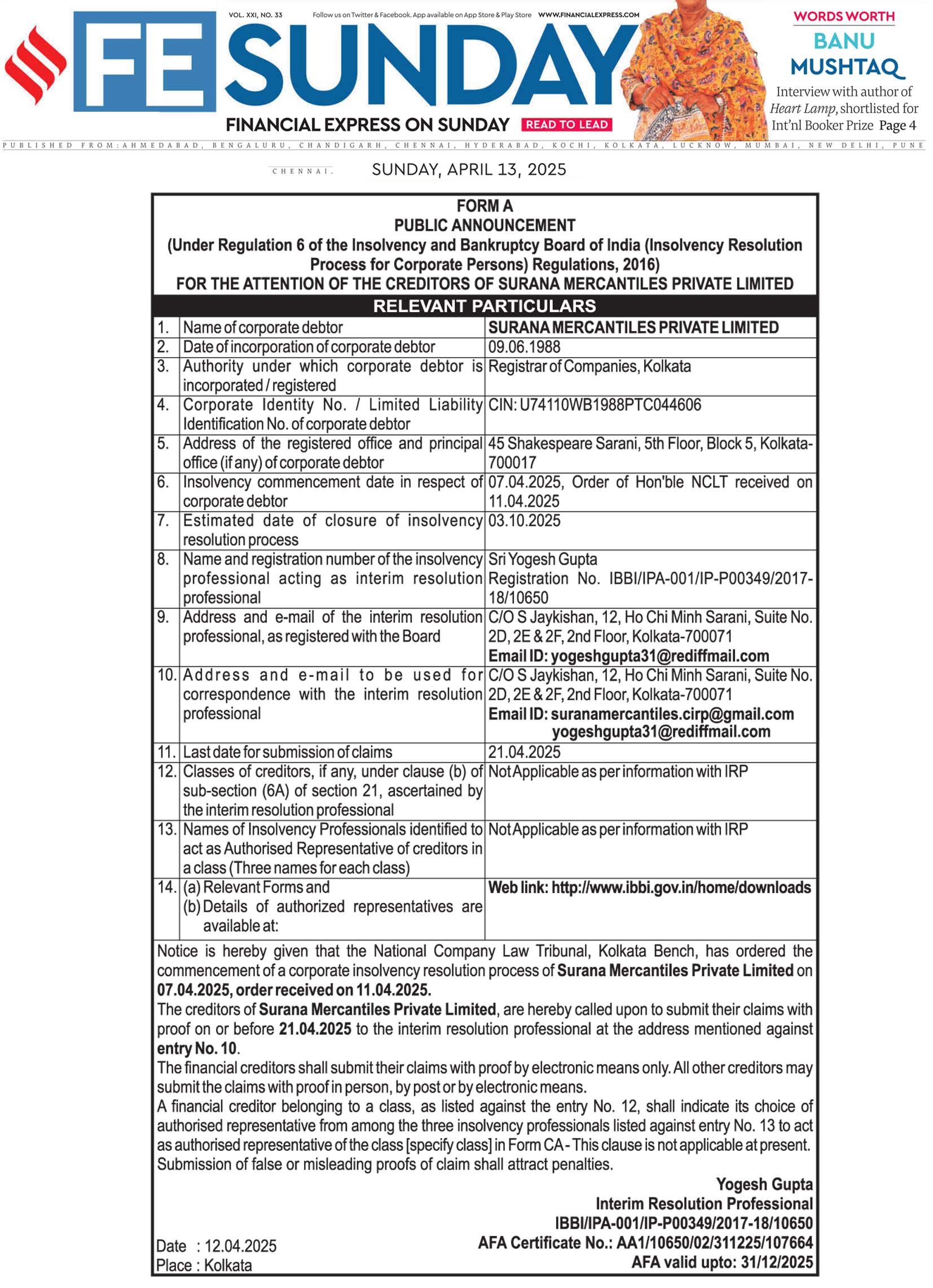 Surana Mercantiles Pvt. Ltd. (Under CIRP)